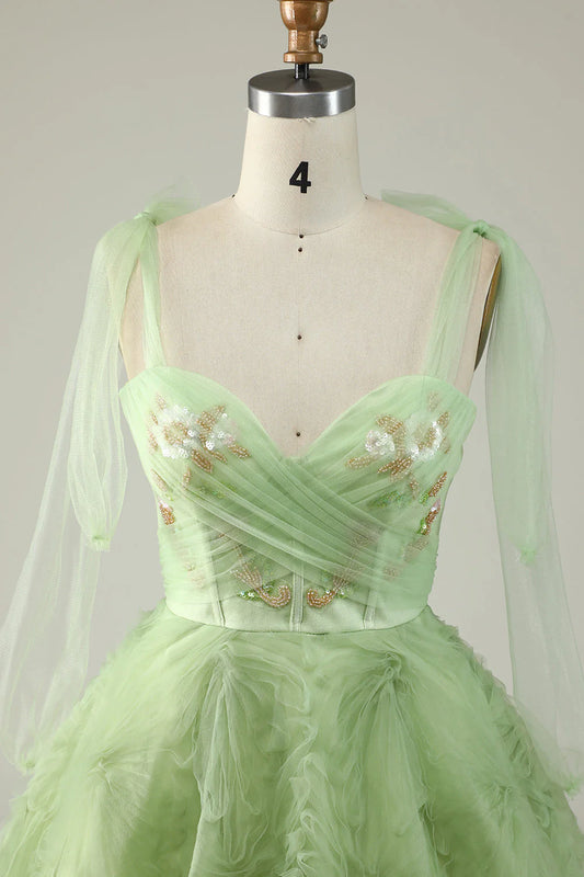 Amzcw Green A Line Sweetheart Short Homecoming Dress with Appliques Sequins