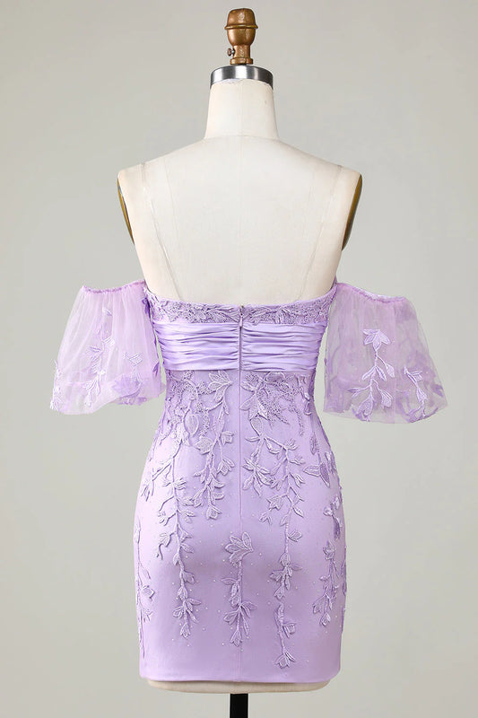 Amzcw Purple Bodycon Sweetheart Short Homecoming Dress with Bowknot