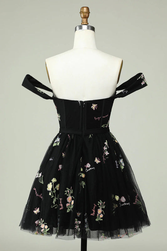 Amzcw Cute A Line Sweetheart Black Short Homecoming Dress with Embroidery
