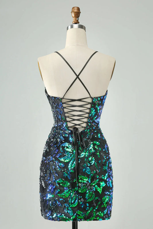 Amzcw Pretty Green Black Bodycon Sparkly Sequin Short Homecoming Dress