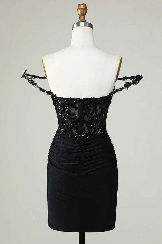 Amzcw Black Bodycon Sweetheart Corset Short Homecoming Dress with Appliques