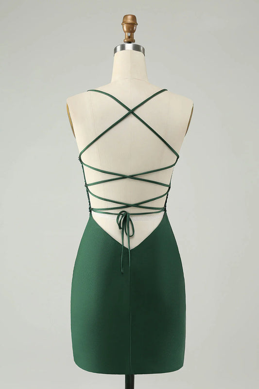 Amzcw Stylish Dark Green Bodycon V Neck Short Homecoming Dress with Beading