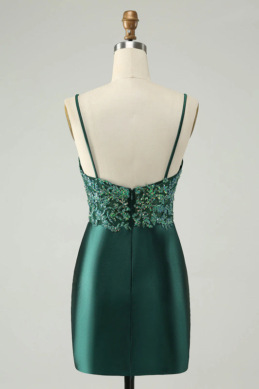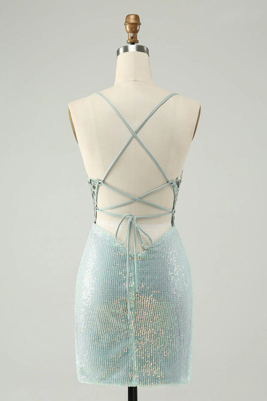 Amzcw Sparkly Dusty Green Bodycon Spaghetti Straps Short Homecoming Dress with Sequins