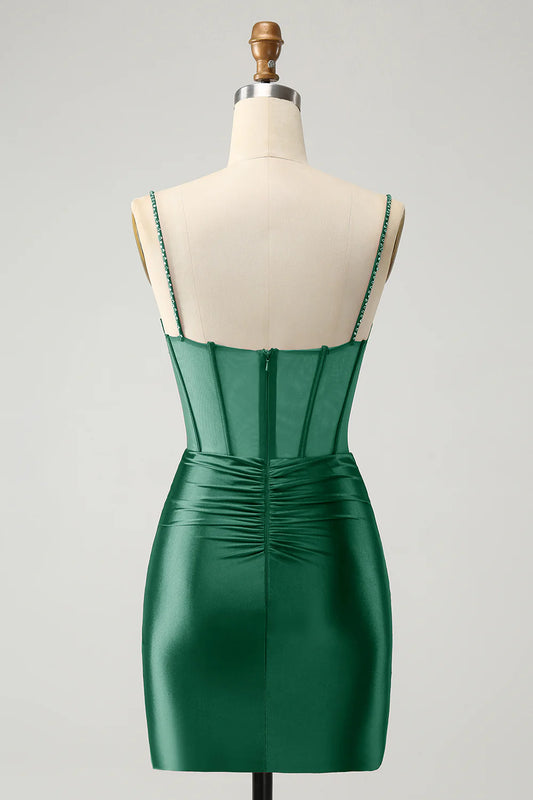 Amzcw Chic Dark Green Bodycon Pleated Corset Short Homecoming Dress with Beading