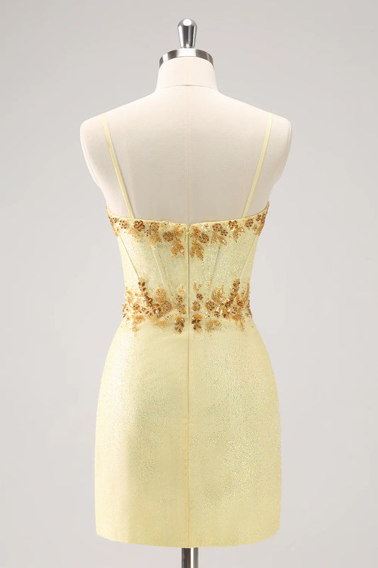 Amzcw Sparkly Yellow Bodycon Corset Short Homecoming Dress with Beading