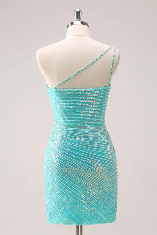 Amzcw Sparkly Mint One Shoulder Tight Short Homecoming Dress with Sequins