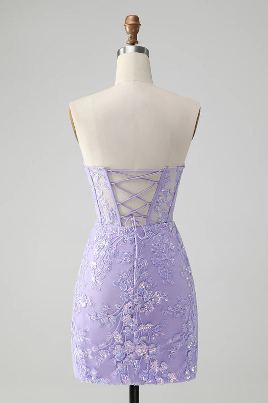 Amzcw Classy Lilac Bodycon Sweetheart Corset Short Homecoming Dress with Sequins
