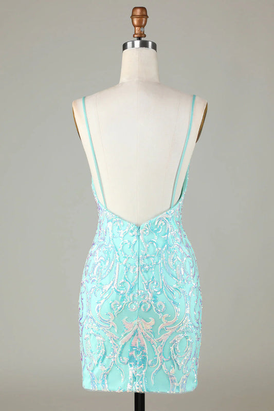 Amzcw Sparkly Tight Spaghetti Straps Green Homecoming Dress with Backless