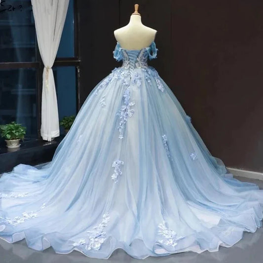 Women's Ball Gown Tulle Off-The-Shoulder Floor-Length Long Prom Dresses
