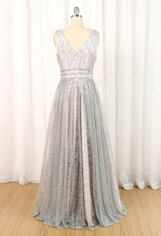 A-Line V-Neck Sleeveless Zipper Appliques Prom Dresses