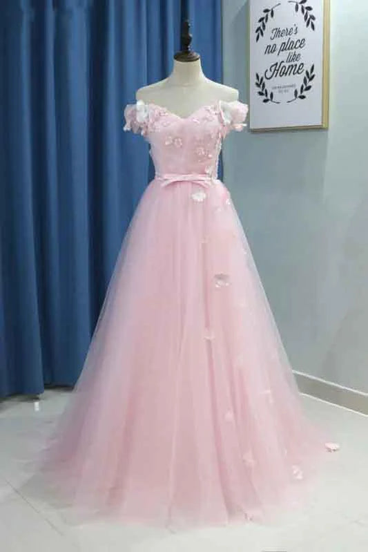Ball Gown Off The Shoulder Prom Dresses Tulle With Appliques