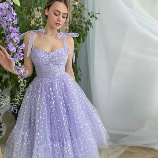 Sweetheart straps Homecoming Dresses A Line Tulle Tea Length