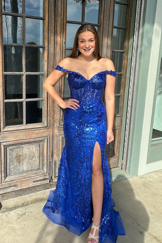 Off Shoulder Lace Floor Length Prom Dresses Evening Dresses