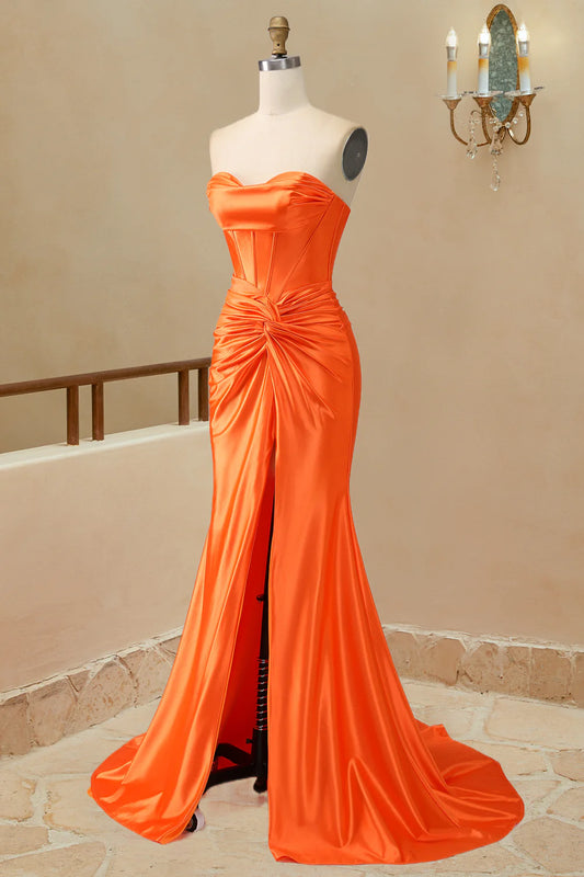 New Arrival Straps Satin Slit Mermaid Sweep Train Prom Evening Dresses