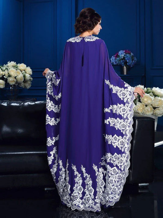 A-Line Princess Scoop Appliques Long Sleeves High Neck Chiffon Mother of the Bride Dresses