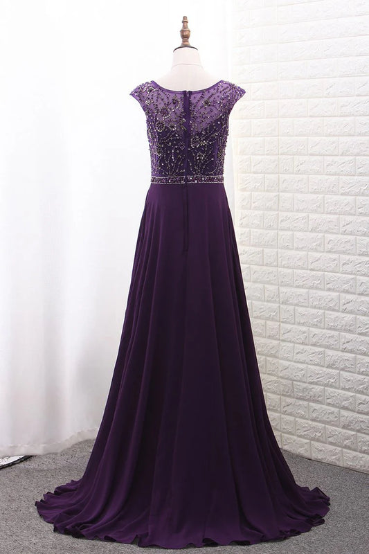 Chiffon Mother Of The Bride Dresses Scoop A Line With Beads Bodice Sweep Train