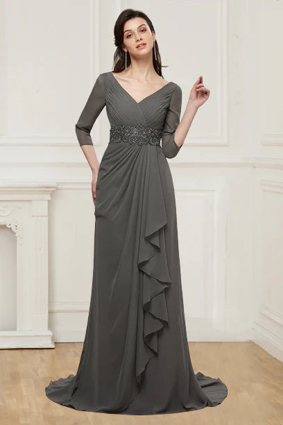 V Neck Beaded Bodice Long Sleeves Mother Of The Bride Dresses