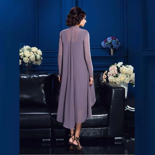 Elegant Two Piece Burgundy Ankle Length Sheath/Column Mother Of The Bride Dress