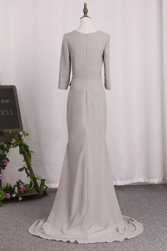 Mermaid 3/4 Length Sleeves Mother Of The Bride Dresses Chiffon Scoop With Sash
