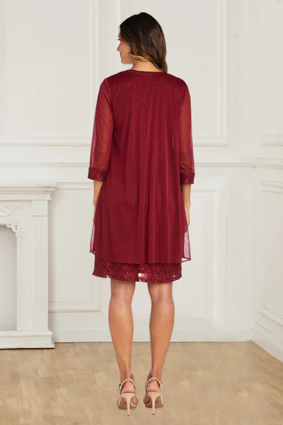 Vintage Two Piece Lace Burgundy Sheath/Column 3/4 Sleeves Mother Of The Bride Dress With