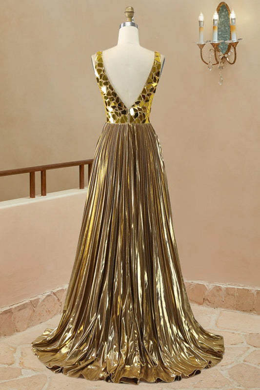 Sexy Polyester V-neck Slit Long Evening Dress Floor-Length Dress For Prom