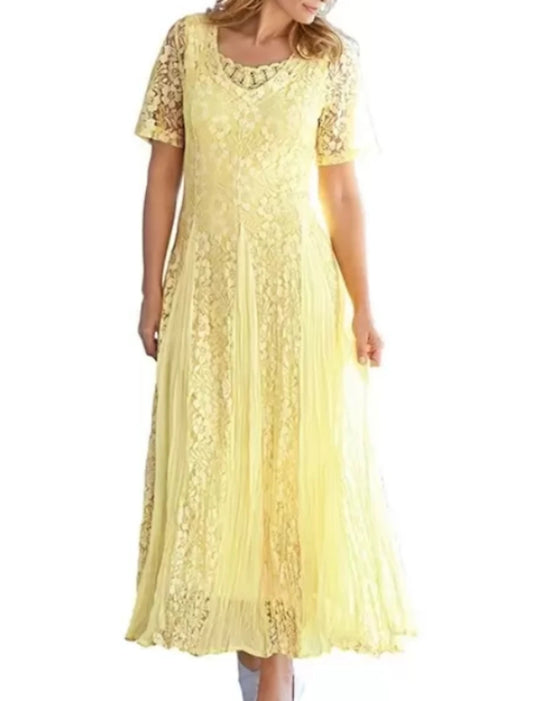 Sheath / Column Mother of the Bride Dress Wedding Guest Elegant Vintage Party Scoop Neck Ankle Length Lace Short Sleeve with Pleats Solid Color