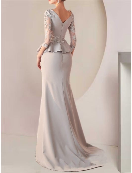Mermaid / Trumpet Mother of the Bride Dress Wedding Guest Elegant V Neck Sweep / Brush Train Stretch Fabric Half Sleeve with Lace Ruching