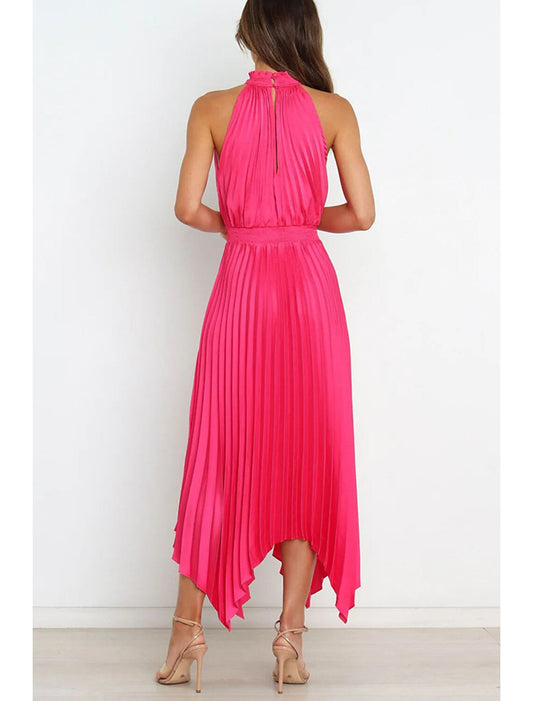 A-Line Party Dresses Casual Dress Homecoming Wedding Guest Asymmetrical Sleeveless Halter Neck Satin with Pleats