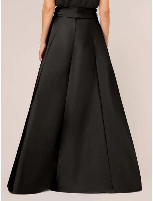 A-Line Wedding Guest Dresses Party Dress Formal Black Dress Plus Size Asymmetrical Sleeveless Jewel Neck Satin with Bow(s) Pleats Crystals