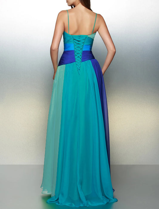 A-Line Wedding Guest Party Dress Color Block Dress Wedding Holiday Floor Length Sleeveless Spaghetti Strap Chiffon with Rhinestone