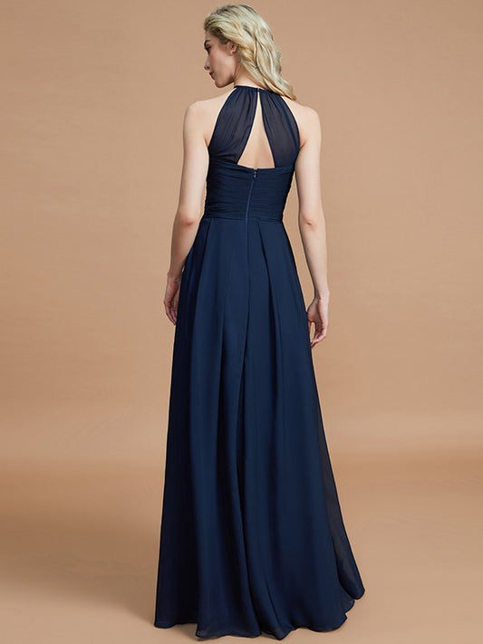 A-Line/Princess Halter Sleeveless Ruched Floor-Length Chiffon Bridesmaid Dresses