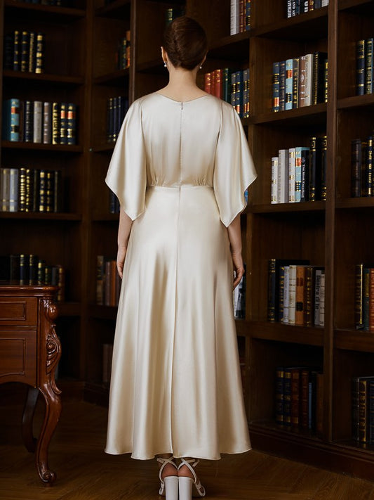 A-Line/Princess Silk like Satin Ruched Scoop 1/2 Sleeves Ankle-Length Mother of the Bride Dresses