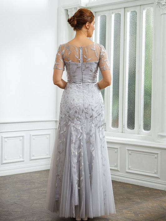 A-Line/Princess Tulle Ruched Bateau Short Sleeves Ankle-Length Mother of the Bride Dresses
