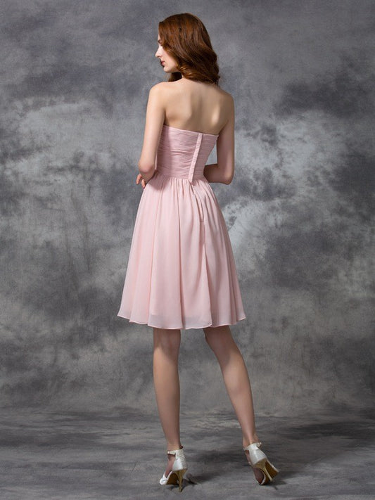 A-line/Princess Sweetheart Sleeveless Ruched Short Chiffon Bridesmaid Dresses
