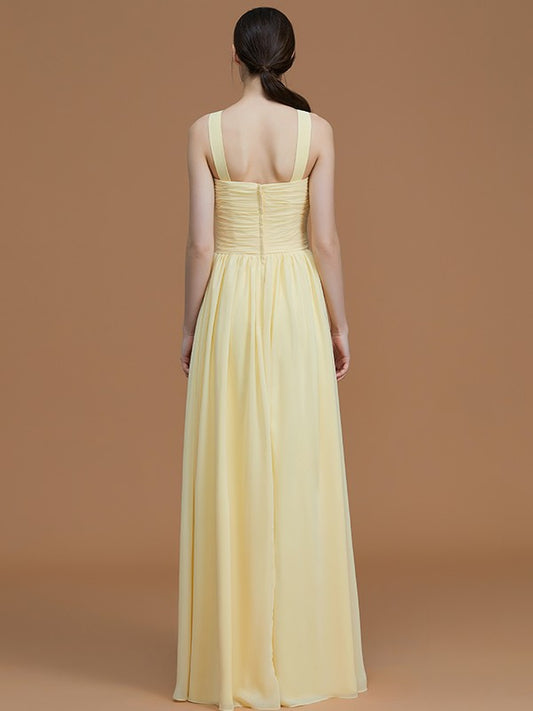 A-Line/Princess V-neck Sleeveless Ruched Floor-Length Chiffon Bridesmaid Dresses
