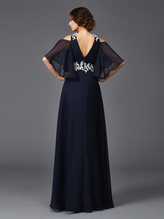 A-Line/Princess Straps Applique 1/2 Sleeves Long Chiffon Mother of the Bride Dresses
