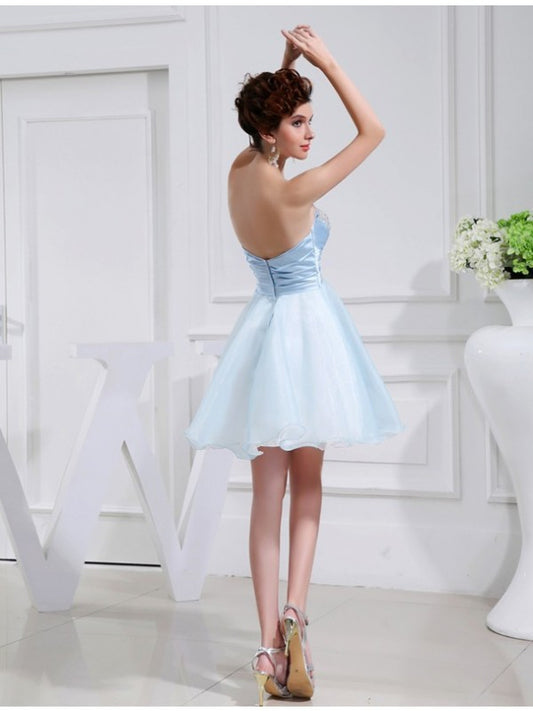 A-Line/Princess Beading Sweetheart Sleeveless Applique Elastic Woven Satin Organza Bridesmaid Dresses