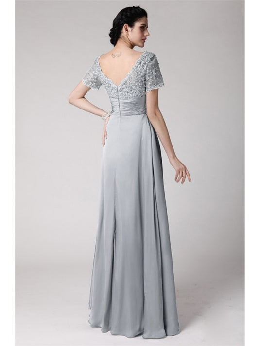 A-Line/Princess Charmeuse Applique V-neck Sleeveless Floor-Length Mother of the Bride Dresses