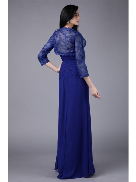 Sheath/Column Bateau Applique 1/2 Sleeves Long Chiffon Mother of the Bride Dresses