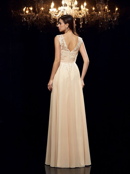 A-Line/Princess V-neck Applique Sleeveless Long Chiffon Mother of the Bride Dresses