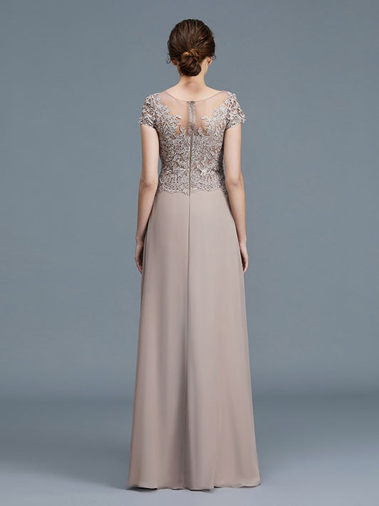 A-Line/Princess Scoop Short Sleeves Applique Floor-Length Chiffon Mother of the Bride Dresses