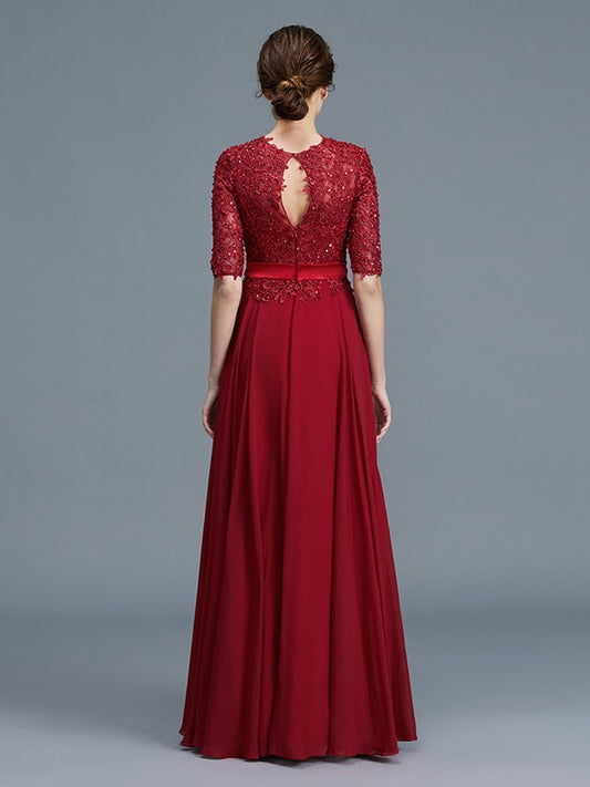 A-Line/Princess Scoop 1/2 Sleeves Chiffon Applique Floor-Length Mother of the Bride Dresses