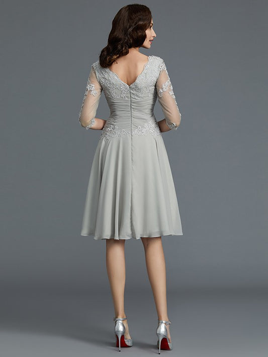 A-Line/Princess 1/2 Sleeves Scoop Knee-Length Applique Chiffon Mother of the Bride Dresses