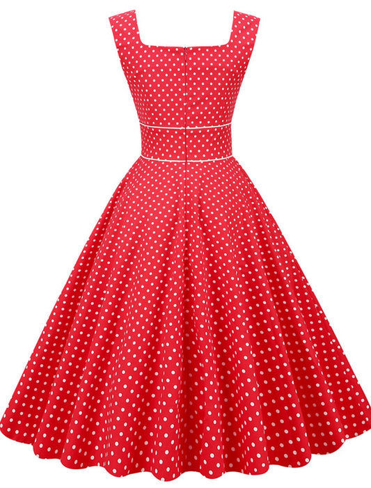 A-Line Party Dresses Vintage Dress Holiday Summer Tea Length Sleeveless Square Neck Spandex with Pleats