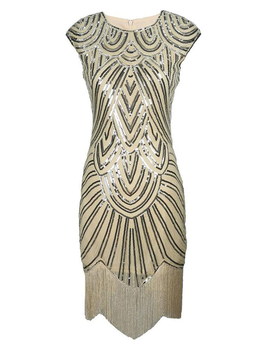 A-Line Cocktail Dresses Vintage Dress Holiday Party Wear Knee Length Sleeveless Jewel Neck Cotton Blend with Fringe Sequin Tassel