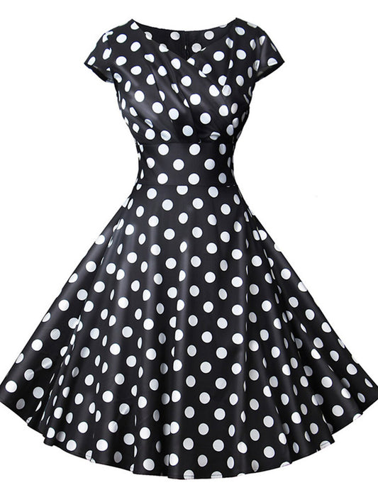 A-Line Party Dresses Vintage Dress Christmas Birthday Knee Length Short Sleeve V Neck Polyester with Pattern / Print Polka Dot