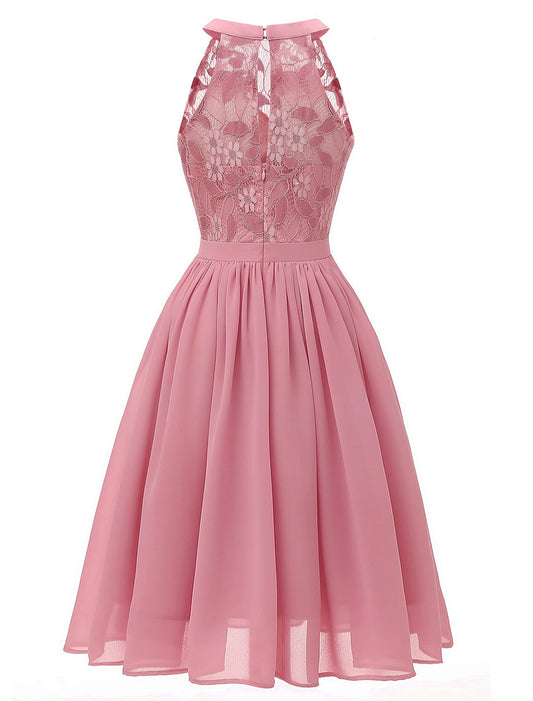 A-Line Cocktail Dresses Vintage Dress Graduation Party Dress Knee Length Sleeveless Jewel Neck Lace with Lace Insert Pattern / Print