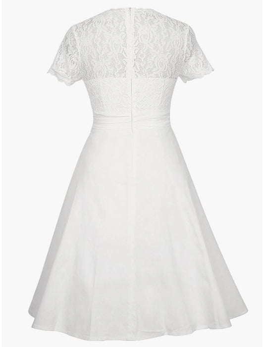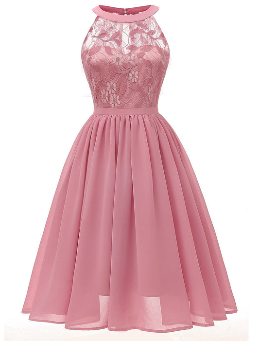 A-Line Cocktail Dresses Vintage Dress Party Wear Knee Length Sleeveless Jewel Neck Lace with Lace Insert Pattern / Print