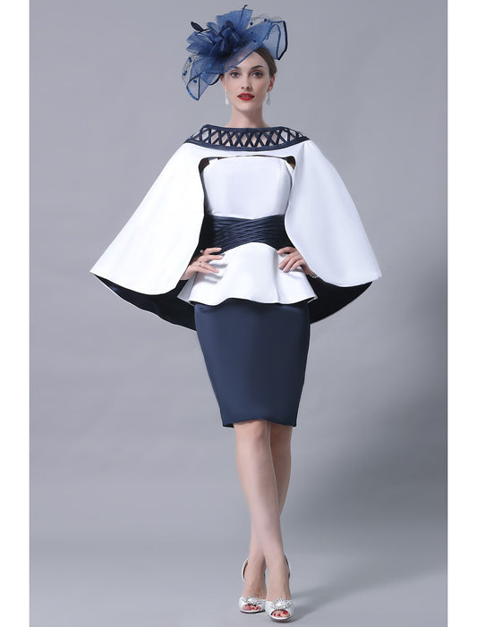 Two Piece Sheath / Column Mother of the Bride Dress Formal Wedding Guest Elegant Scoop Neck Knee Length Chiffon Lace Short Sleeve with Bow(s)