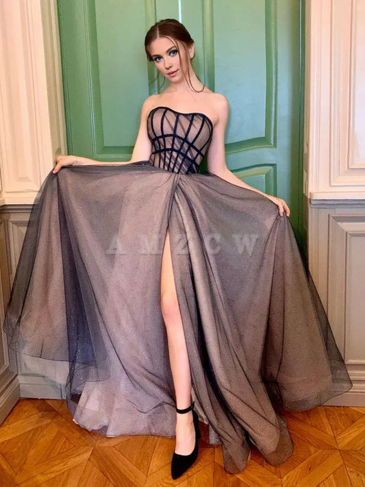 Amzcw Simple tulle long prom dress A line tulle evening dress formal wear dresses
